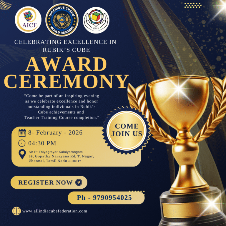 All India Cube Federation align perfectly with the symbolism of the Rubik’s Cube, particularly in terms of engaging and motivating youth to take on intellectual challenges and problem-solving skills. All India Cube Federation is also know as AICF.